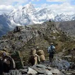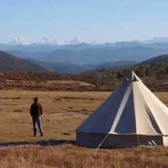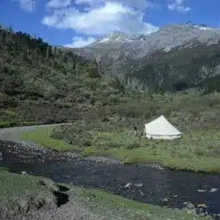 Ascension de 3 cols successifs situés entre 3800 et 4100 m. Vue sur les sommets des montagnes de la région, comme le Kawa Karpo (Montagne Meili), la chaîne de la montagne Yading au Sichuan, sinon plus proche, le massif d’Abujee. notre randonnée passe au travers de forêts de mélèzes, sapins et rhododendrons d’une rare beauté. Le camp de ce soir est prévu sur un nouvelle alpage situé à 4052m d’altitude.