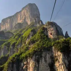 Ce matin montez la Montagne Tianmen en empruntant le plus long téléphérique du monde (7455 mètres). La montagne, 1518 mètres d’altitude au-dessus du niveau de la mer, est la plus haute montagne à Zhangjiajie. Petite marche autour du promontoire, en passant sur des passerelles en verres accrochées sur les falaises, jusqu’à la grotte de Tianmen et d’une arche rendue célèbre par des pilotes russes l’ayant traversé en avion. Descente de la montagne en empruntant le plus long escalator du monde, puis à pied sur un grand escalier en contrebas de l’arche. Déjeuner. L’après-midi, route vers la vieille ville Miao de Furong, accrochée en arc de cercle autour d’une grande cascade, encore peu visitée par les occidentaux. Dîner. Nuit à Furong au Tuwang Xing Gong Hotel, aménagé en espalier au dessus des chutes. C’est un grand bâtiment de style Miao traditionnel qui s’accroche dans la verdure sur le flanc de la falaise. Chambres avec une vue imprenable sur les chutes.