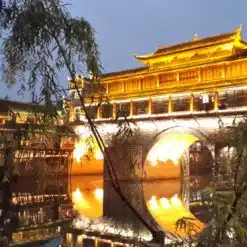 Continuation ensuite vers la vieille ville de Fenghuang, centre de la minorité ethnique Miao. Le soir, à Fenghuang, dîner dans l’un des restaurants sur pilotis pittoresques surplombant la rivière Tuo éclairée.
