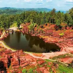 Ce matin, départ vers Hongshilin le géoparc national des Roches rouges qui possède de nombreuses formations rocheuses en forme de vagues dont les couleurs changent avec le temps, du noir au rouge.