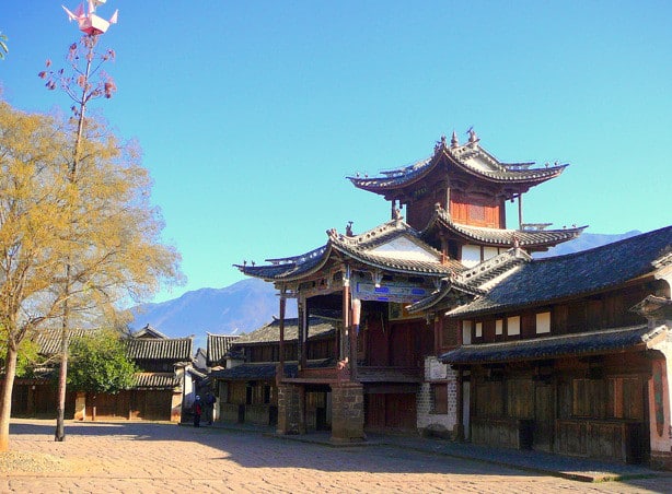 Route matinale vers Lijiang. Découverte de la vallée de Lijiang avec les villages de Baisha et de Yuhu, de minorités Naxi, d’où vous aurez une superbe vue sur les sommets enneigés du massif du Dragon de Jade.