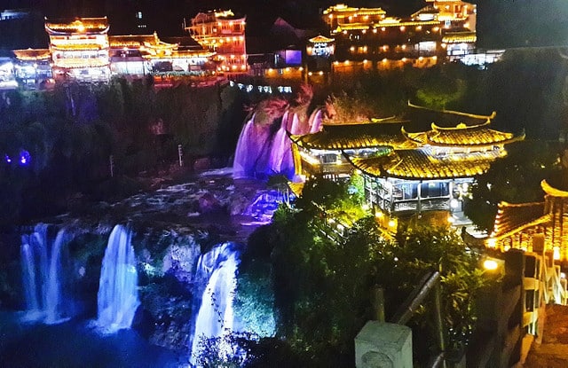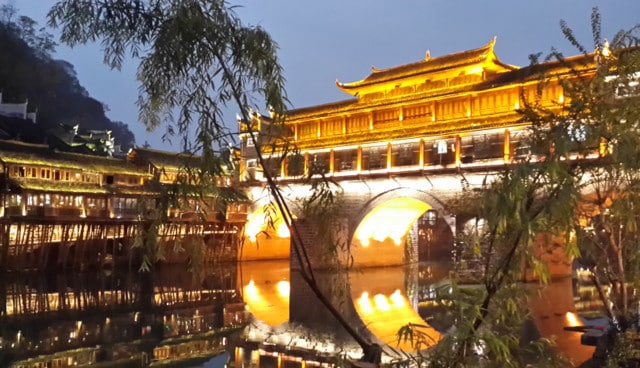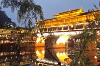 Continuation ensuite vers la vieille ville de Fenghuang, centre de la minorité ethnique Miao. Le soir, à Fenghuang, dîner dans l’un des restaurants sur pilotis pittoresques surplombant la rivière Tuo éclairée.