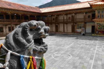 A Benzilan, visite du monastère tibétain de Dongzhulin, situé en aplomb du Yangtsé. C’est un lieu populaire pour les locaux, connu pour avoir hébergé plusieurs « bouddhas vivants ». A Benzilan, vous aurez peut-être la chance de découvrir un atelier de poterie sur bois, dans une superbe et grande maison tibétaine, si son propriétaire est disponible lors de votre passage.
