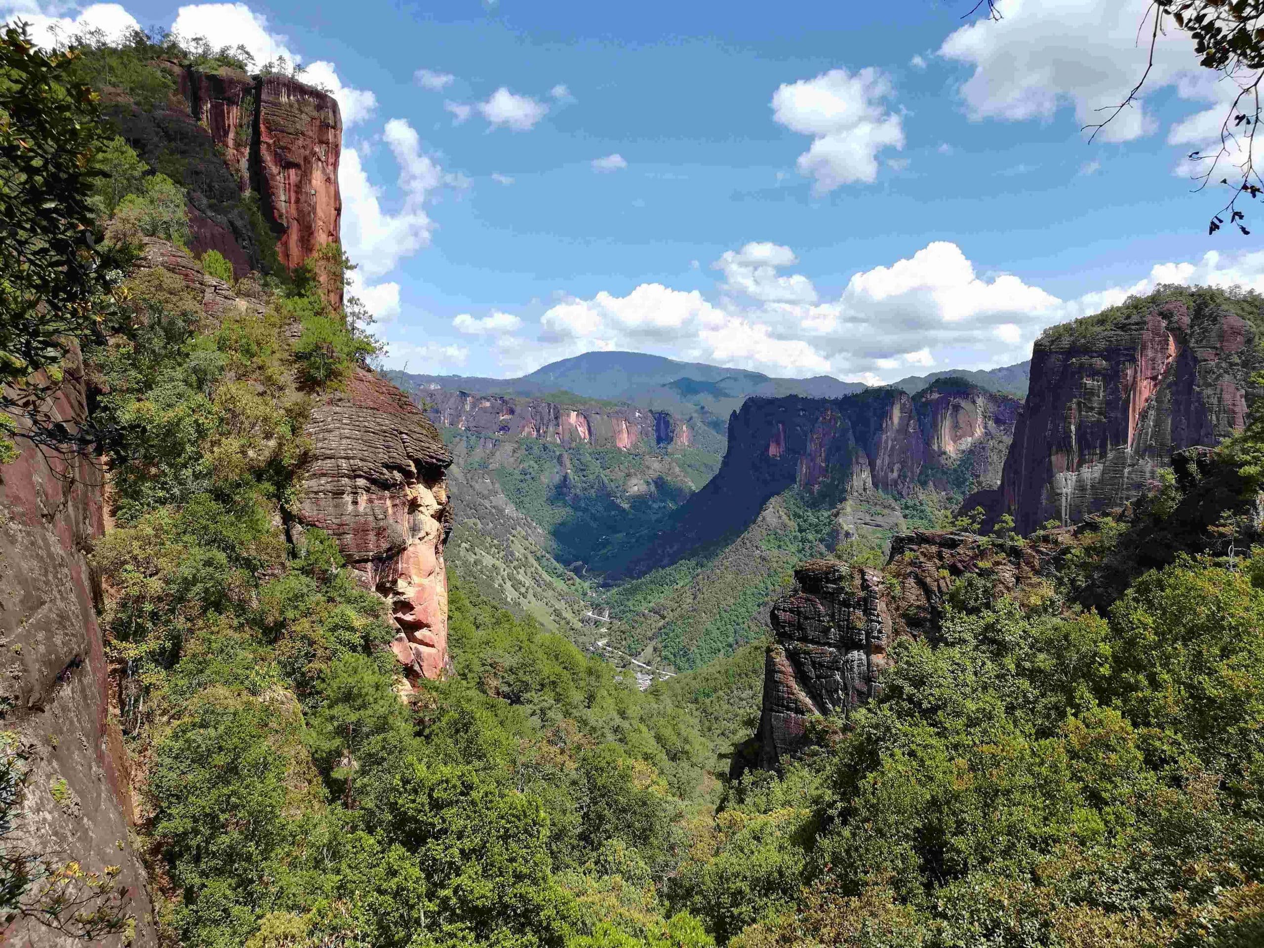 Petit-déjeuner, et route vers la région isolée de Tacheng. En cours de trajet, court arrêt au village de Shigu, site de la première courbe sur le fleuve Yangtsé. Détour dans le secteur de Liming pour la découverte de l’exceptionnel Parc National de Laojun Shan avec ses immenses monts karstiques accessibles en télécabine.