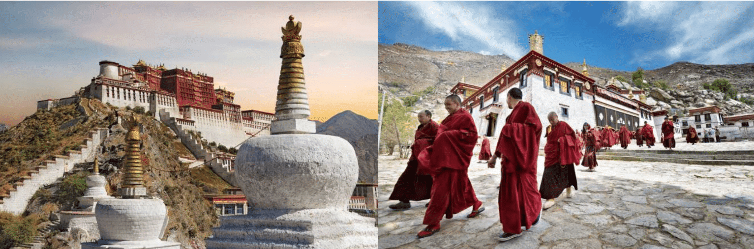 Visite du monastère de Jokhang, et marche autour du monastère avec d’autres pèlerins sur le chemin du Barkhor (visite la veille en fonction de l’heure d’arrivée). Découverte du palais du Potala. Déjeuner. Dans l’après-midi, du monastère de Séra. Bien que très endommagée lors de l’invasion chinoise du Tibet, puis sous la Révolution Culturelle, elle a été restaurée et n’a pas perdu sa fonction d’université monastique.