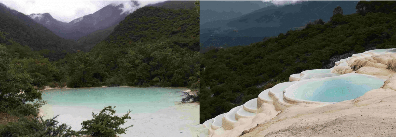 Un premier arrêt se fera à la découverte du Parc National de Potatso. Le parc est réputé pour ses eaux particulièrement cristallines sur fond de collines majestueuses, et ses forêts abritant une faune et une flore assez rares. Un second arrêt sera fait à Baishuitai pour y admirer les spectaculaires bassins calcaires aux eaux turquoise contrastant avec le vert intense des reliefs environnants. Un univers surprenant que l’on ne s’attend pas à trouver ici ; encore une des richesses que nous dévoile le Yunnan…