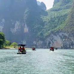 Après le petit déjeuner départ en véhicule jusqu’au superbe point de vue de Xianggong offrant une vue dégagée sur une étendue de pics karstiques classés au patrimoine mondial de l’UNESCO. Montez au sommet du point panoramique pour une vue plongeante sur la rivière Li. Retrouvez le véhicule qui vous déposera 5km plus loin au départ d’un sentier que vous emprunterez à pied à travers les vergers d’agrumes et petits hameaux jusqu’au village de Xingping (1h30 à 2h de randonnée facile). Le chemin offre une belle perspective sur la rivière. Vous visiterez également un petit temple blotti sur les berges à l’entrée de la grotte de l’escargot où vivent encore quelques moines. Traversée de la rivière avec le bac local et découverte de la vieille rue de Xingping où vous déjeunerez. Dans l’après-midi, effectuez une balade en radeau sur l’une des plus belles portions de la rivière Li entre Xingping et la colline des 9 chevaux, à travers des petits villages de pêcheurs, rizières et bosquets de bambous (45 minutes de croisière environ). C’est un paysage de cette portion qui a inspiré l’illustration du billet de 20RMB chinois.