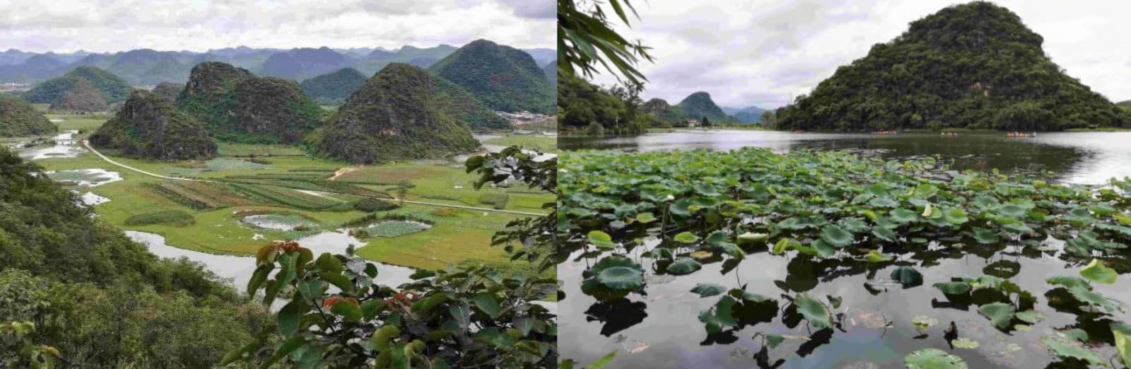 Rencontre avec votre guide anglophone à 07h30. Transfert à la gare pour votre train à grande vitesse à destination de Puzhehei, à 310km de là. Le site de Puzhehei est somptueux, il est tout simplement surnommé le « petit Guilin », faisant référence aux reliefs karstiques bien connus. Le site est bucolique.