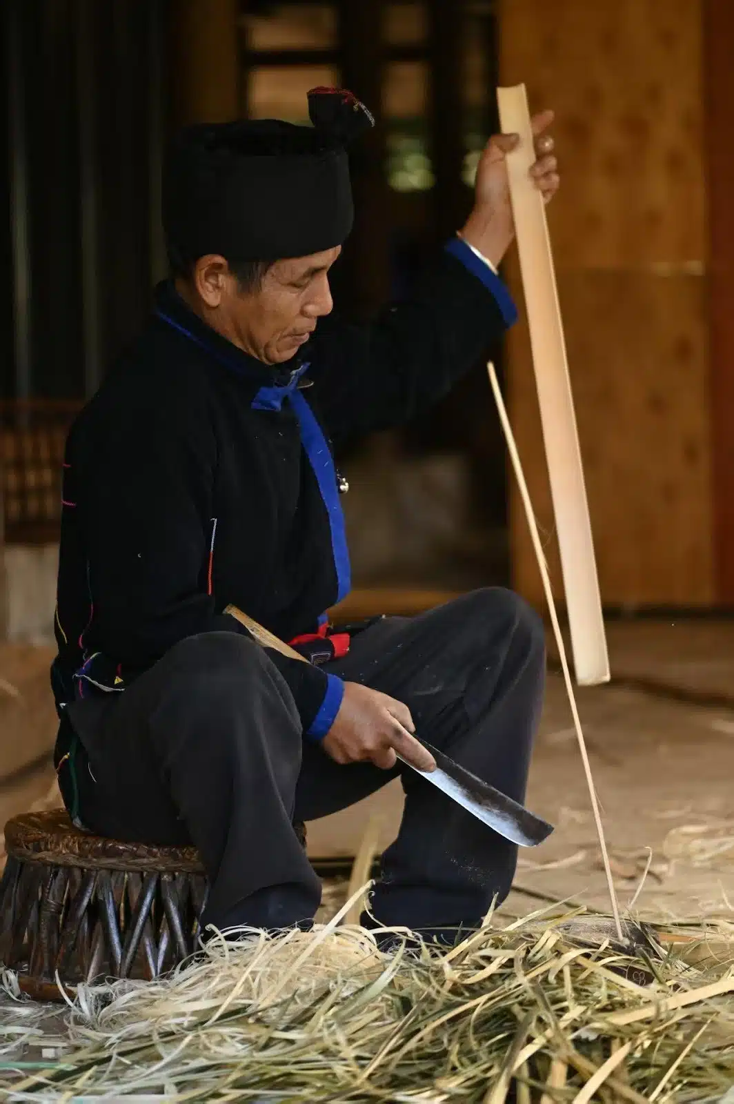 Observation des oiseaux et randonnée avec Atu, ancien chasseur devenu écologiste, qui partage son savoir sur neuf espèces de rotin essentielles à la vie locale et autrefois réservées aux rois Dai. Collecte d’eau de source dans des tubes de bambou pour l’infusion. Après déjeuner, comparaison en dégustation guidée de votre thé artisanal avec des thés locaux. En soirée, préparation d’un repas communautaire autour du feu, musique de flûte traditionnelle et fête familiale au karaoké du village (à votre charge, environ 400 RMB).
