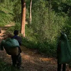 Journée consacrée à l’apprentissage du thé brut. Avec Alan, cueillette des jeunes pousses sous la canopée tropicale, pique-nique sauvage de plats aux feuilles de thé (à votre charge), retour en triporteur avec la récolte du matin. Atelier de transformation : flétrissage et séchage au soleil. Après dîner, initiation à la torréfaction, au roulage et à l’emballage avec la famille hôte.