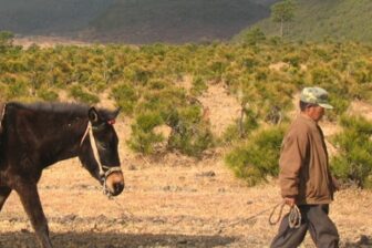 Pour débuter une nouvelle journée, vous enfourchez votre vélo et partez vers le nord, en direction de Niujie (30 km, 3 heures). L’itinéraire traverse des routes rurales bordées de champs et de collines douces. Les villages Yi, aux maisons basses et colorées, ponctuent le chemin. C’est l’occasion de croiser des habitants en habits traditionnels, notamment sur les marchés locaux où se mêlent couleurs, épices et senteurs. Arrivée à Niujie dans l’après-midi et installation dans une auberge simple mais accueillante, au cœur d’un décor pastoral apaisant.