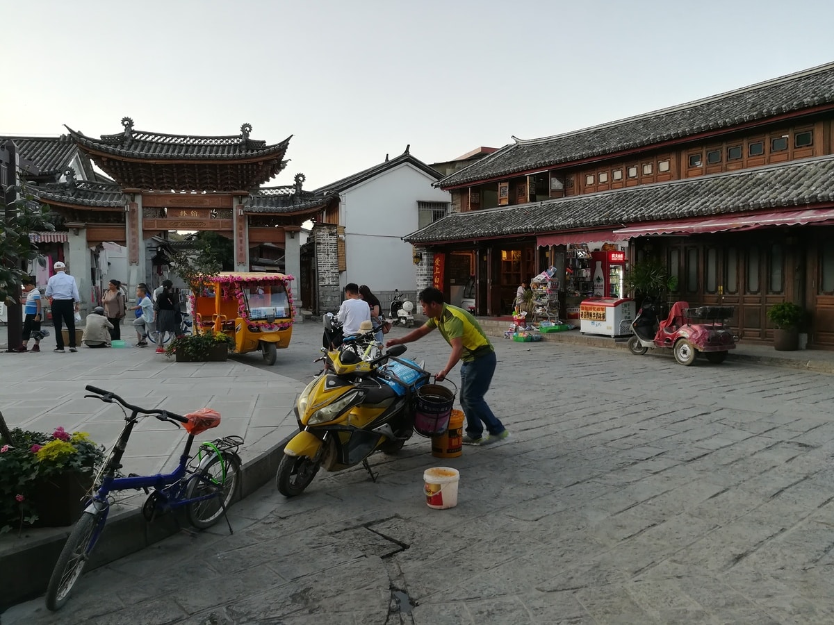 Xizhou est une bourgade très calme et encore peu fréquentée. Elle a l’avantage de se préserver du tourisme de masse et on peut y observer une vraie vie locale, surtout autour de la place principale où les familles se retrouvent, où les enfants aiment jouer jusqu’après la tombée de la nuit. Posez- vous dans un restaurant ou un café autour de la place, dégustez une bonne bière fraîche locale, et observez la vie qui vous entoure.Détail amusant : Attention, dans la vieille ville, il n’y a pas d’ éclairage nocturne au-delà de la place principale, donc n’oubliez pas votre téléphone ou la lampe torche fournie par votre hôtel, cela vous aidera à vous orientez dans les dédales de ruelles pavées !
